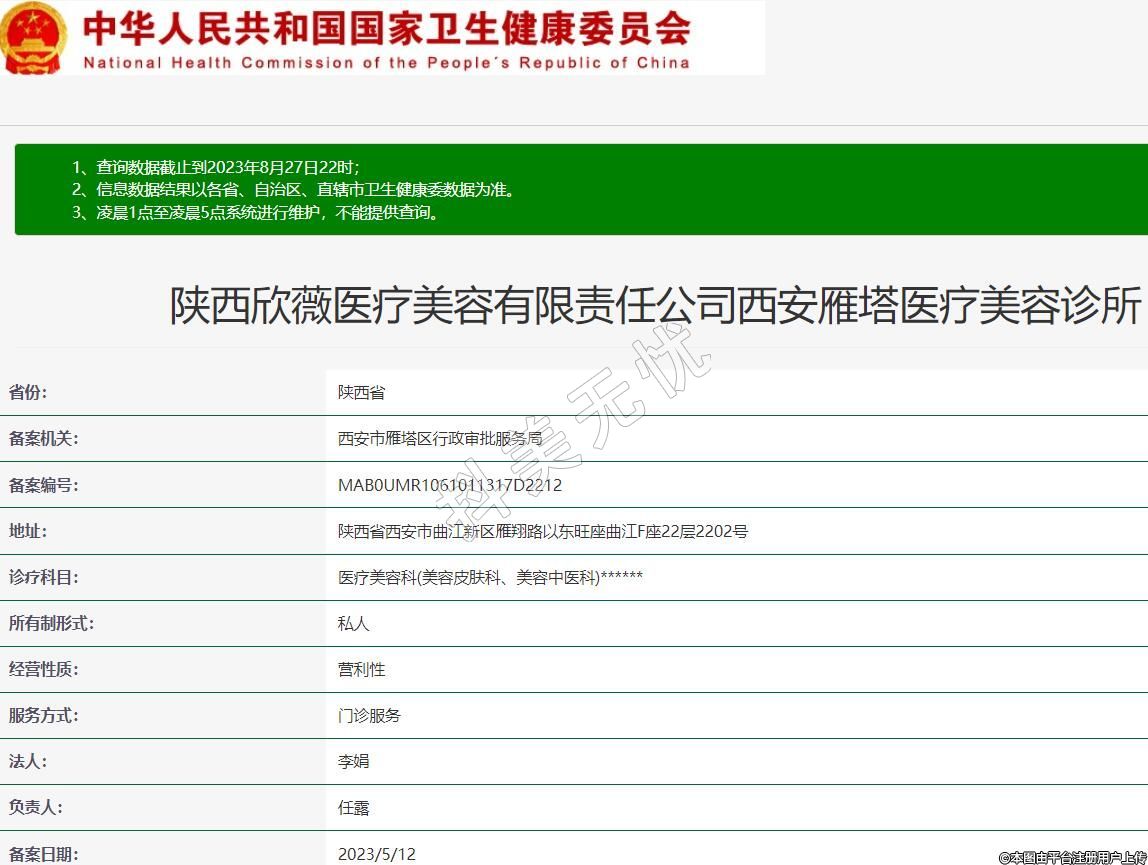 陜西欣薇醫(yī)療美容有限責任公司西安雁塔醫(yī)療美容診所