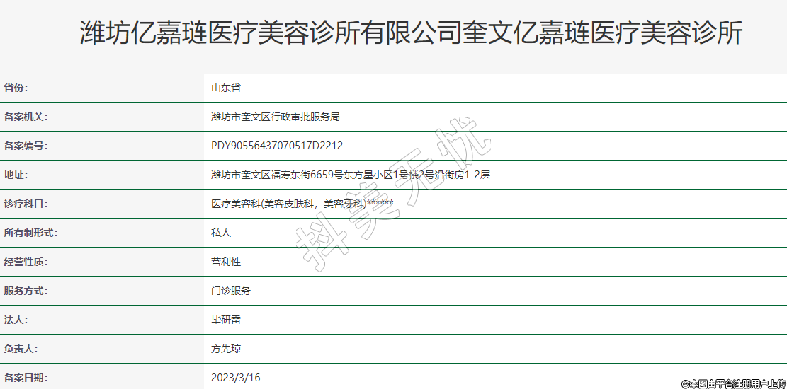 濰坊億嘉璉醫(yī)療美容診所有限公司奎文億嘉璉醫(yī)療美容診所
