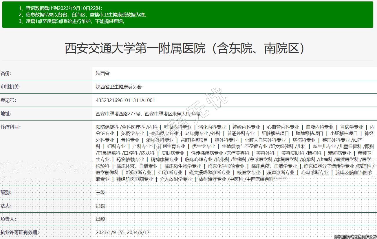 西安交通大學(xué)第一附屬醫(yī)院(含東院、南院區(qū))