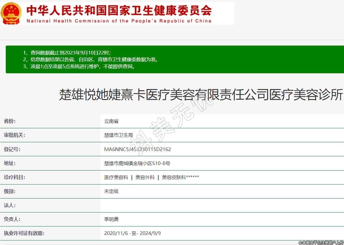 楚雄悅她婕熹卡醫(yī)療美容有限責(zé)任公司醫(yī)療美容診所