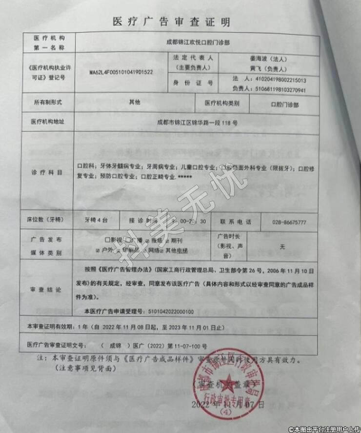 機(jī)構(gòu)名稱:成都錦江歡悅口腔門診部