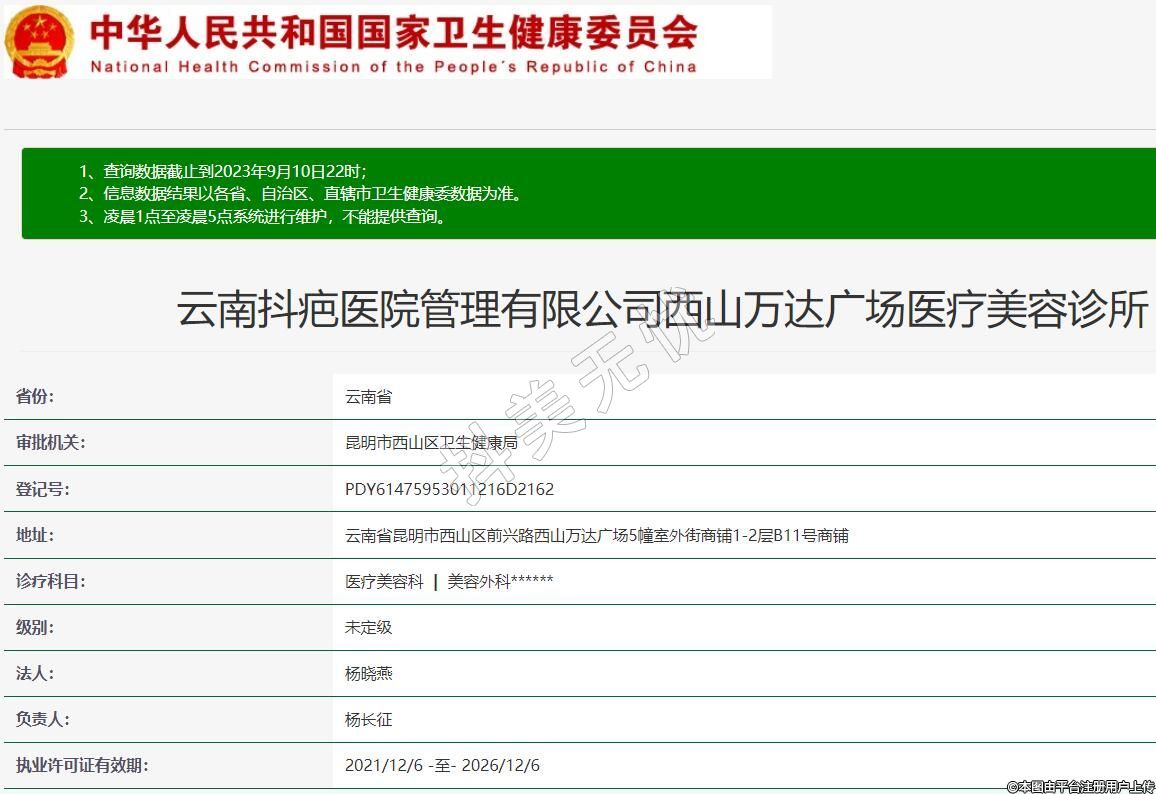 云南抖疤醫(yī)院管理有限公司西山萬達(dá)廣場醫(yī)療美容診所