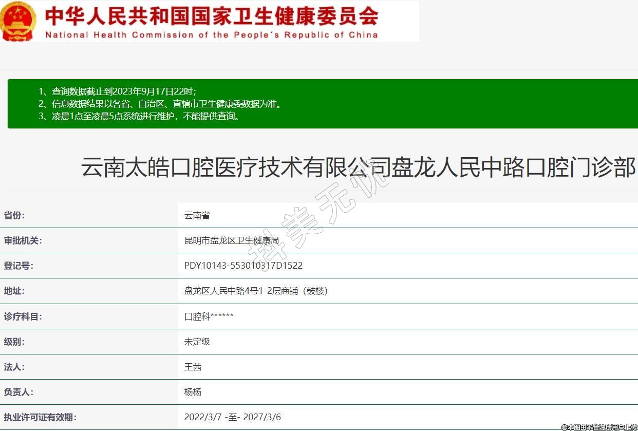 云南太皓口腔醫(yī)療技術(shù)有限公司盤龍人民中路口腔門診部