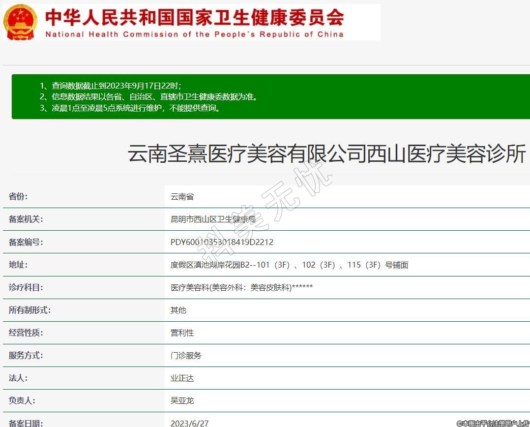 備案機關(guān):昆明市西山區(qū)衛(wèi)生健康局
