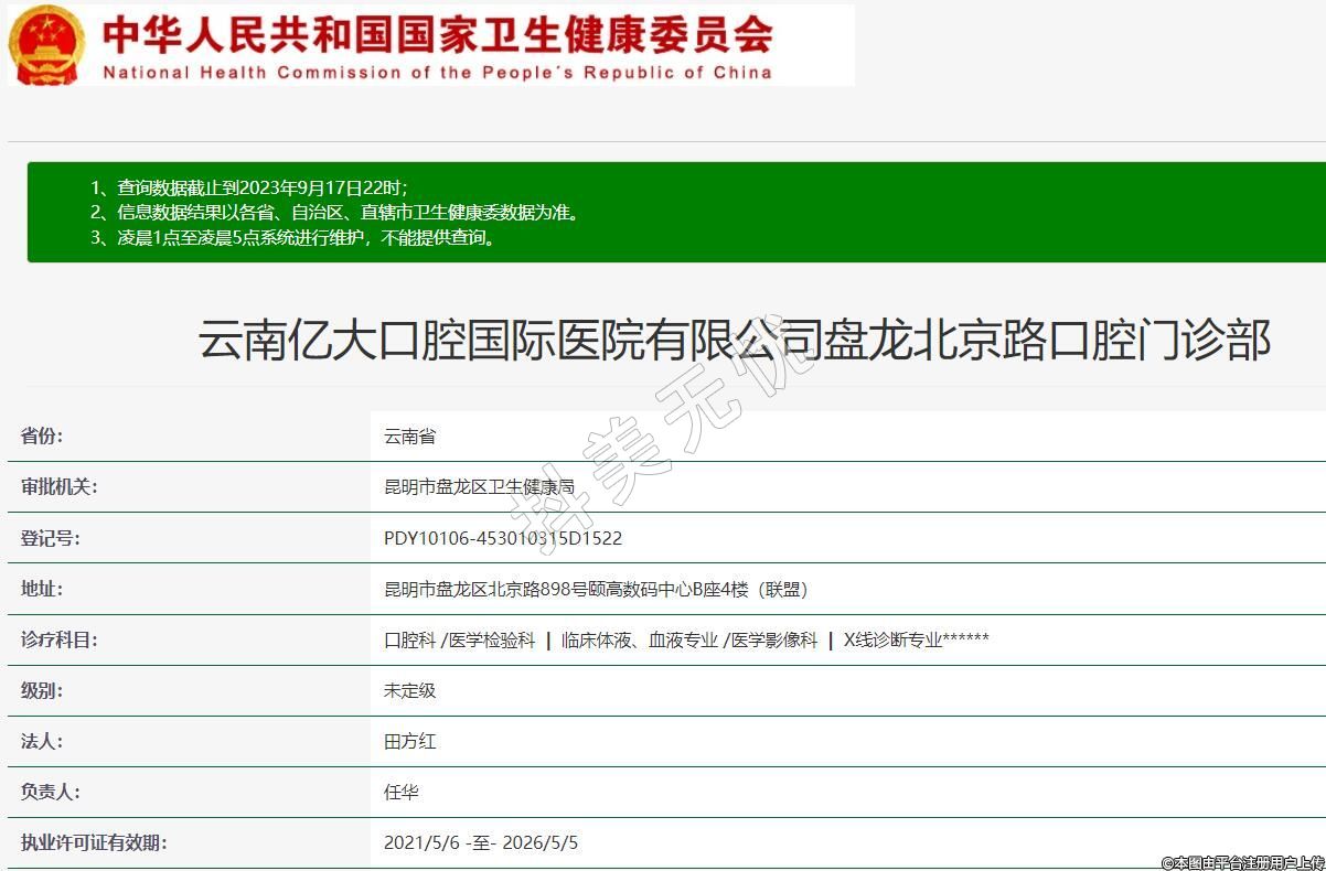云南億大口腔國(guó)際醫(yī)院有限公司盤龍北京路口腔門診部