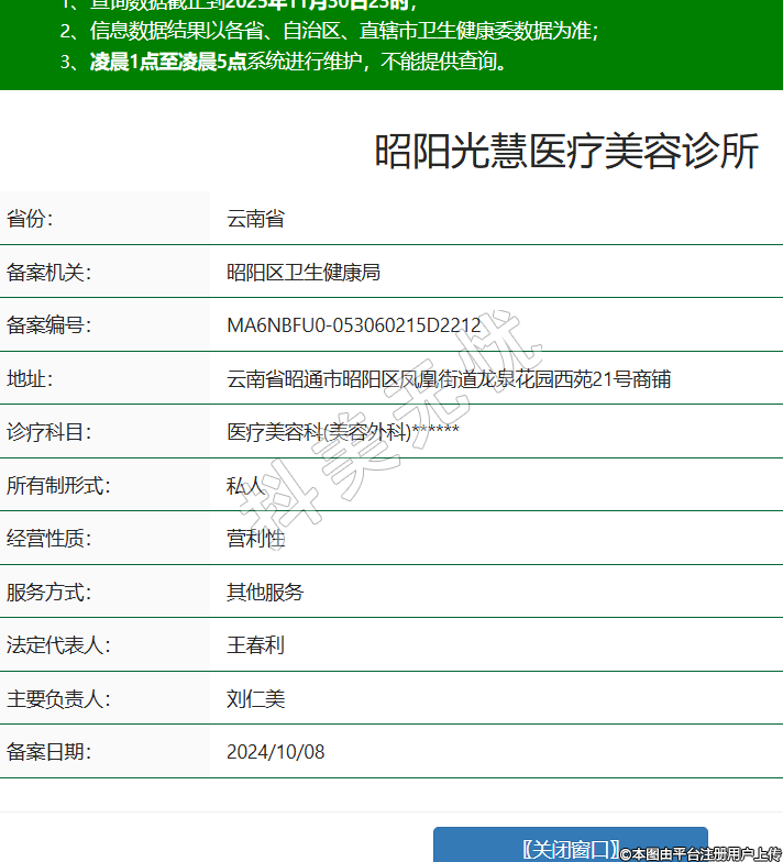 省份:云南省備案機關(guān):昭陽區(qū)衛(wèi)生健康局備案編號:MA6NBFU0-053060215D2212地址:云南省昭通市昭陽區(qū)鳳凰街道龍泉花園西苑21號商鋪診療科目:醫(yī)療美容科(美容外科)******所有制形式:私人經(jīng)營性質(zhì):營利性服務(wù)方式:其他服務(wù)法定代表人:王春利主要負責(zé)人:劉仁美備案日期:2024/10/08 -