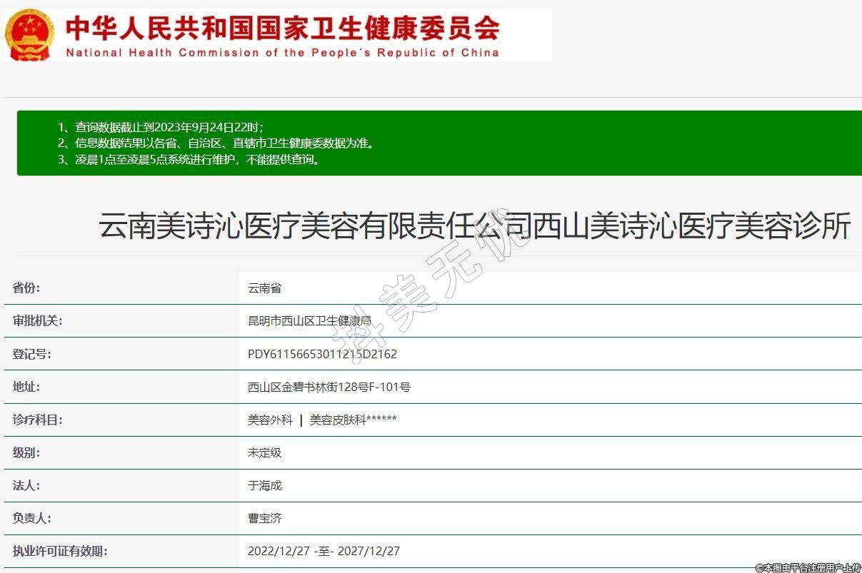 云南美詩沁醫(yī)療美容有限責任公司西山美詩沁醫(yī)療美容診所