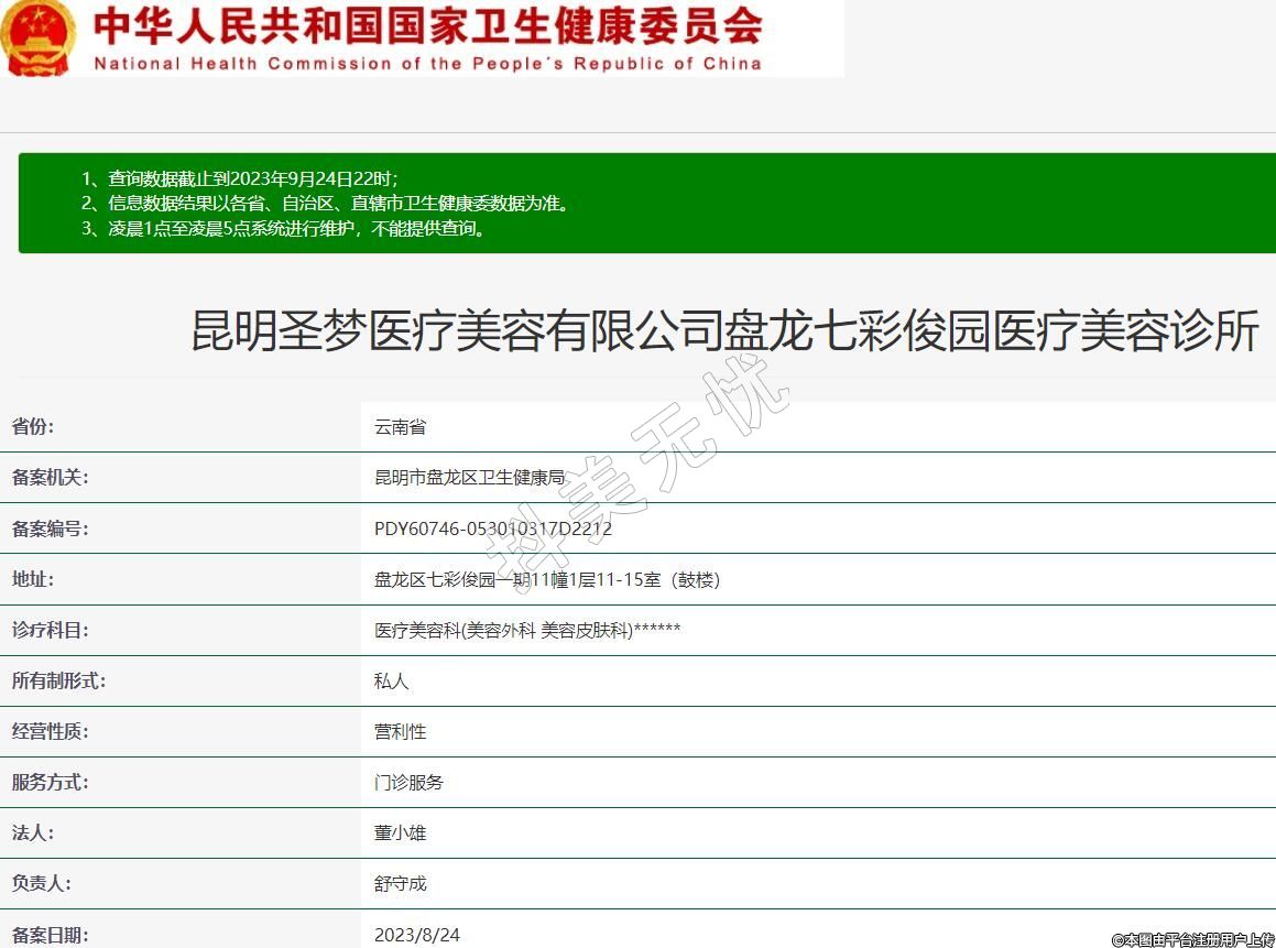 備案機關:昆明市盤龍區(qū)衛(wèi)生健康局