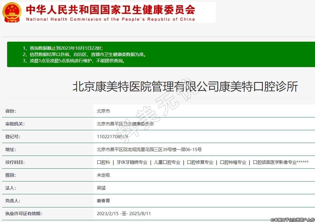 北京康美特醫(yī)院管理有限公司康美特口腔診所
