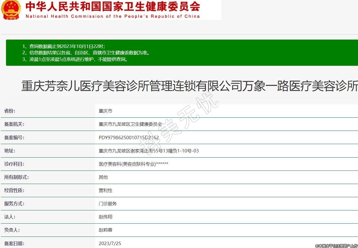 重慶芳奈兒醫(yī)療美容診所管理連鎖有限公司萬象一路醫(yī)療美容診所