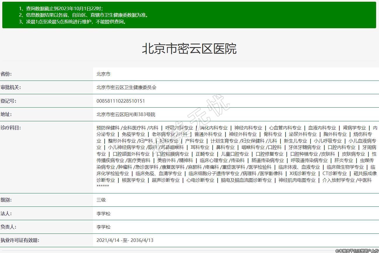 審批機(jī)關(guān):北京市密云區(qū)衛(wèi)生健康委員會(huì)