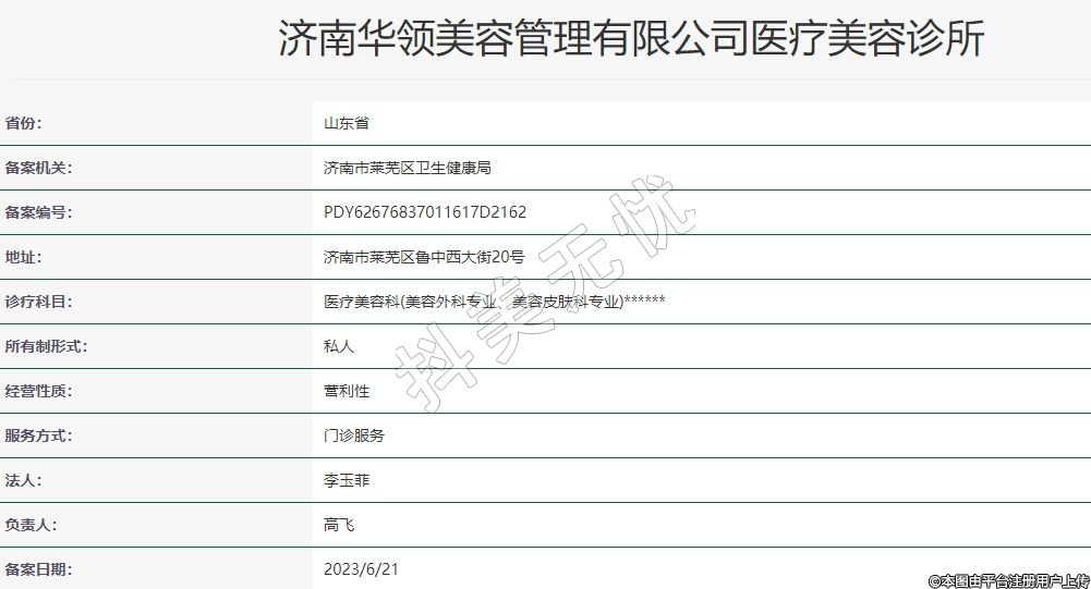 濟(jì)南華領(lǐng)美容管理有限公司醫(yī)療美容診所