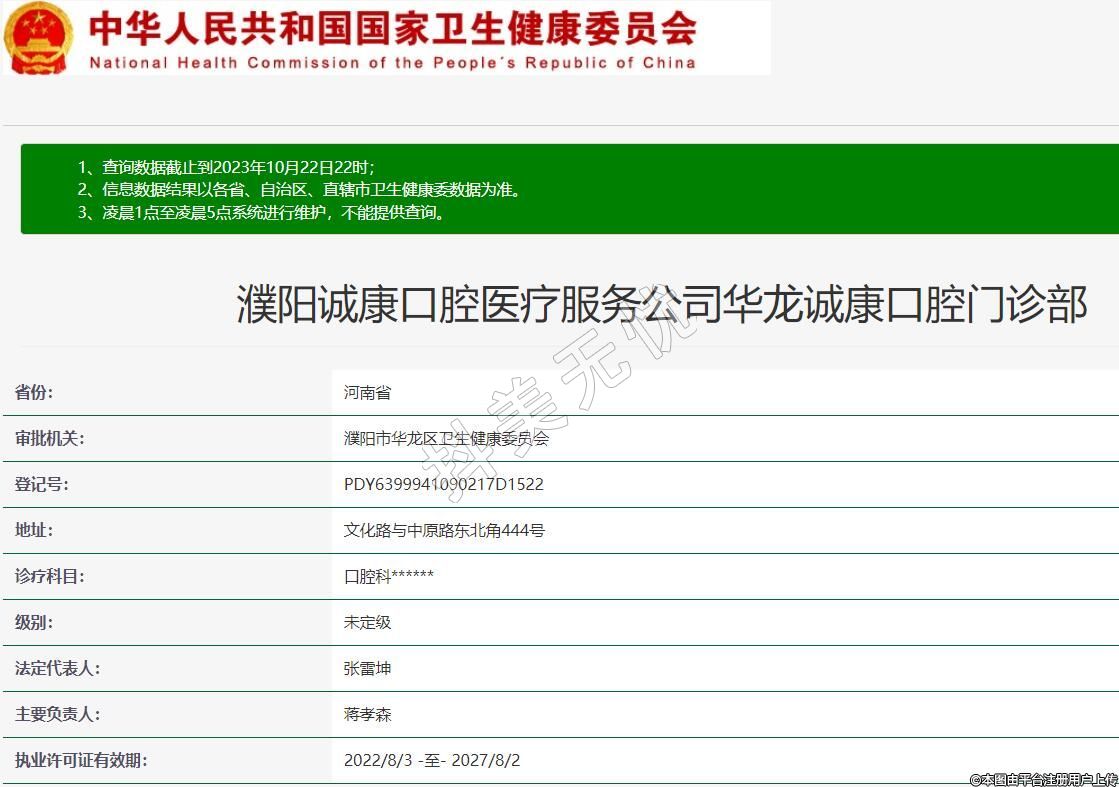 濮陽誠康口腔醫(yī)療服務公司華龍誠康口腔門診部