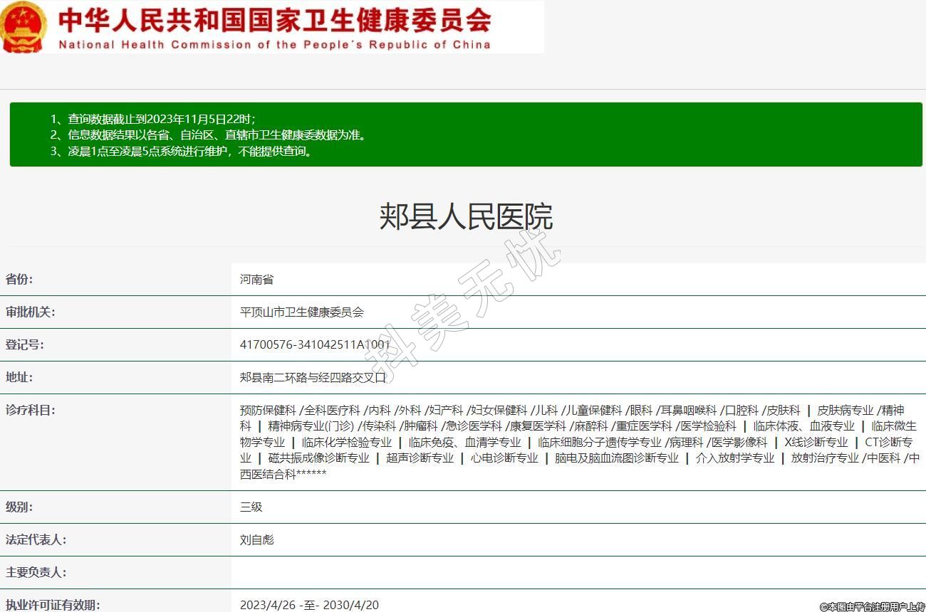 審批機關:平頂山市衛(wèi)生健康委員會