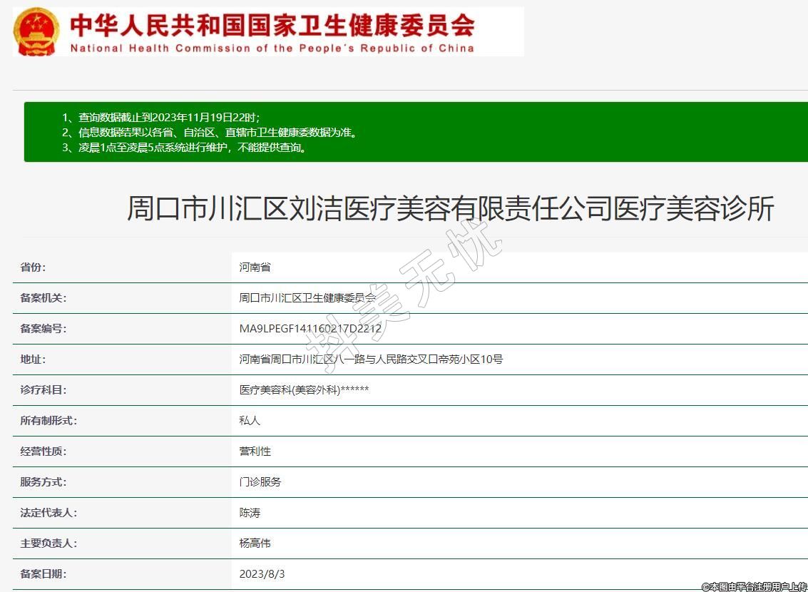 周口市川匯區(qū)劉潔醫(yī)療美容有限責(zé)任公司醫(yī)療美容診所