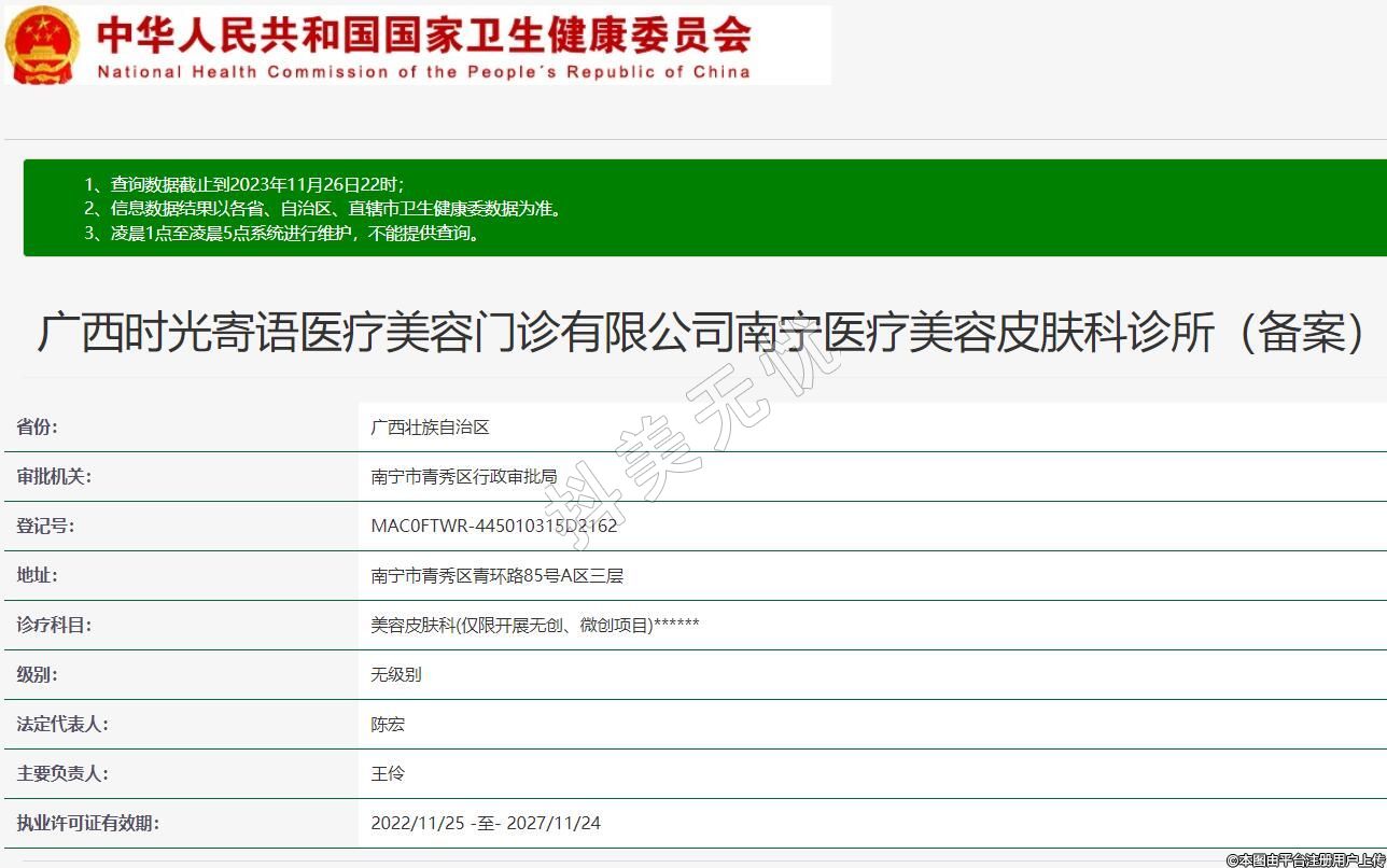 廣西時光寄語醫(yī)療美容門診有限公司南寧醫(yī)療美容皮膚科診所(備案)