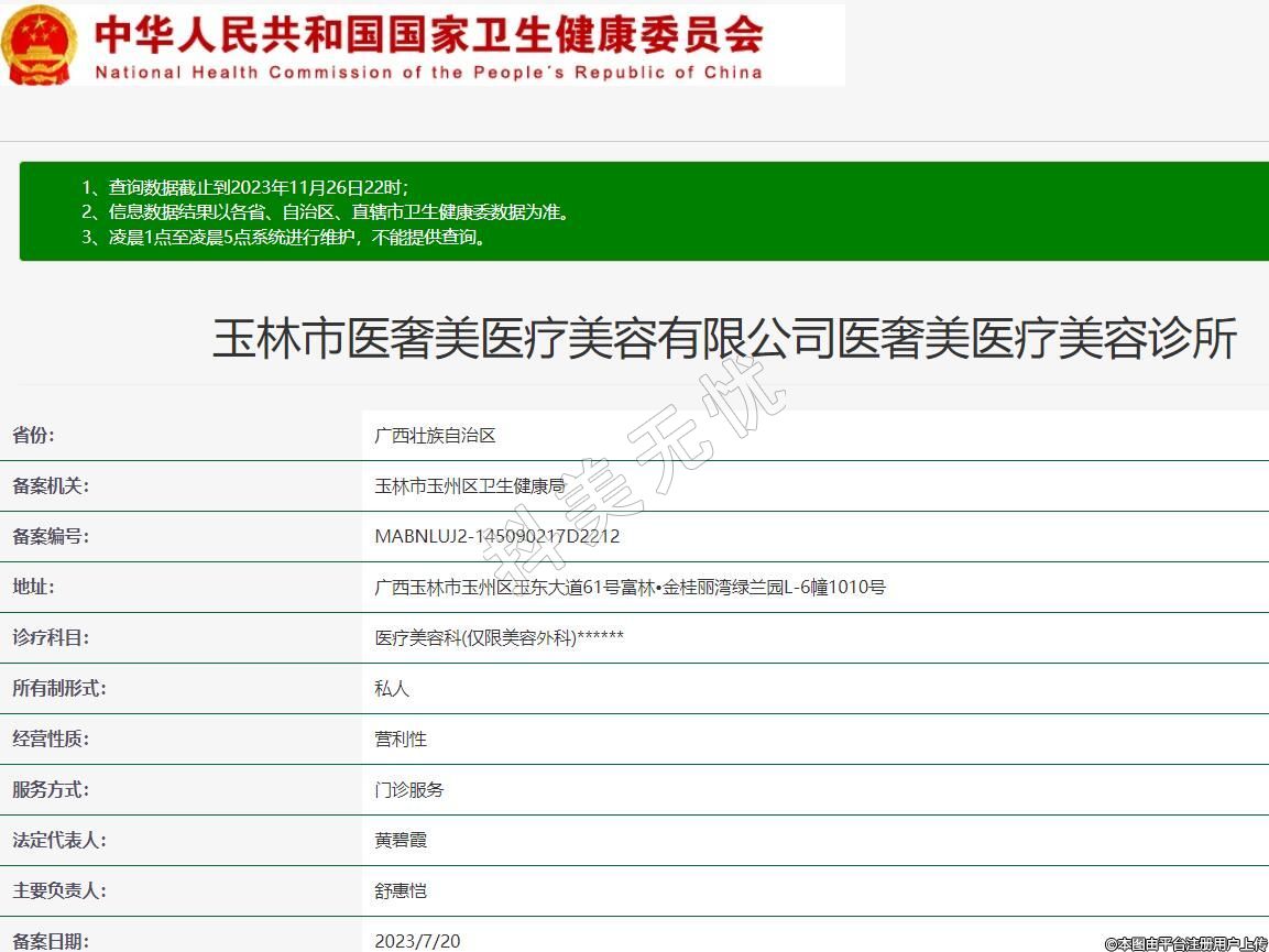 玉林市醫(yī)奢美醫(yī)療美容有限公司醫(yī)奢美醫(yī)療美容診所