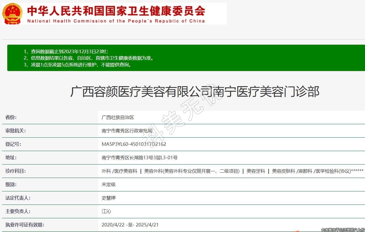 廣西容顏醫(yī)療美容有限公司南寧醫(yī)療美容門診部