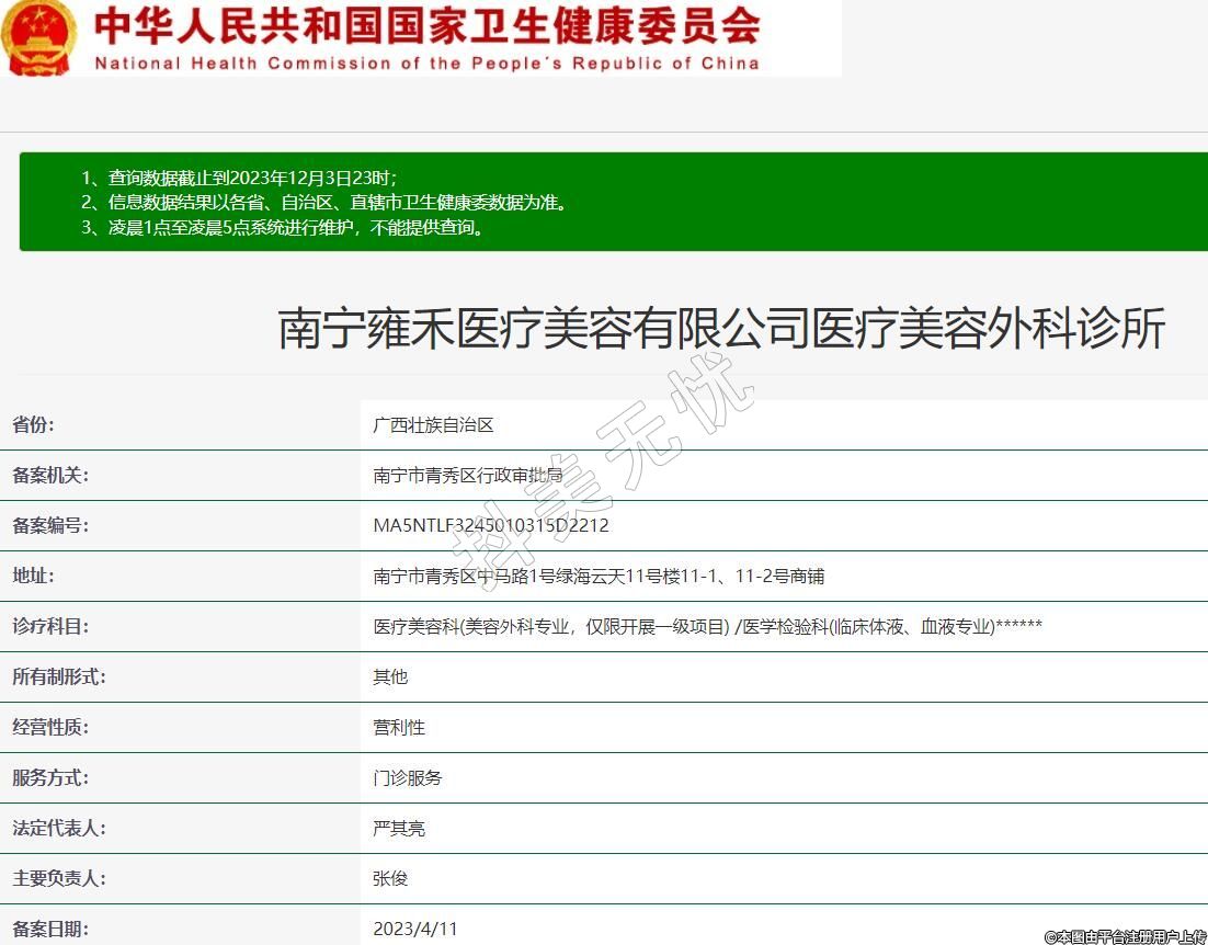 南寧雍禾醫(yī)療美容有限公司醫(yī)療美容外科診所