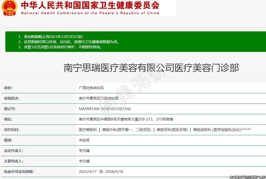 南寧思瑞醫(yī)療美容有限公司醫(yī)療美容門診部