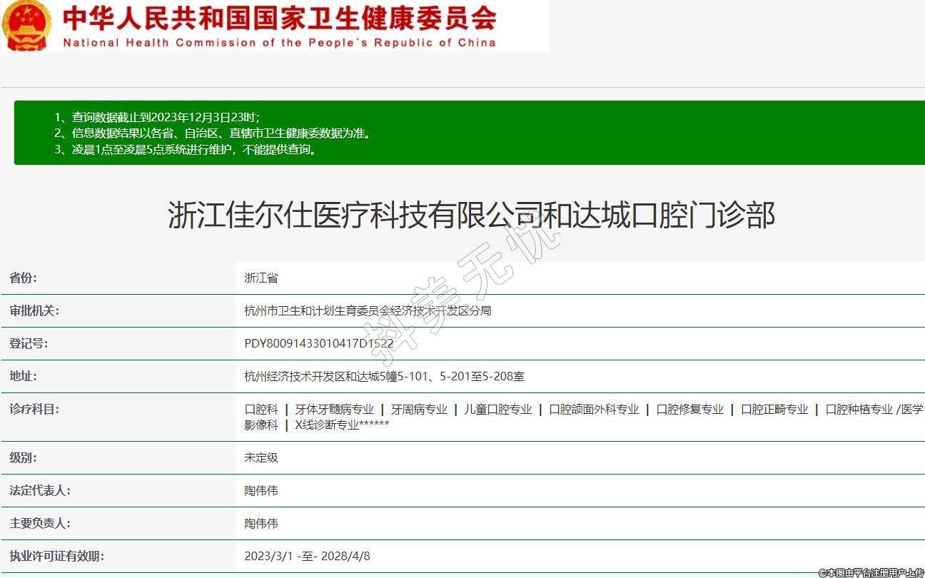 浙江佳爾仕醫(yī)療科技有限公司和達城口腔門診部