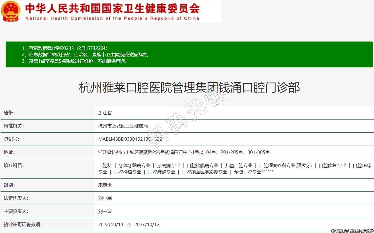 杭州雅萊口腔醫(yī)院管理集團錢涌口腔門診部