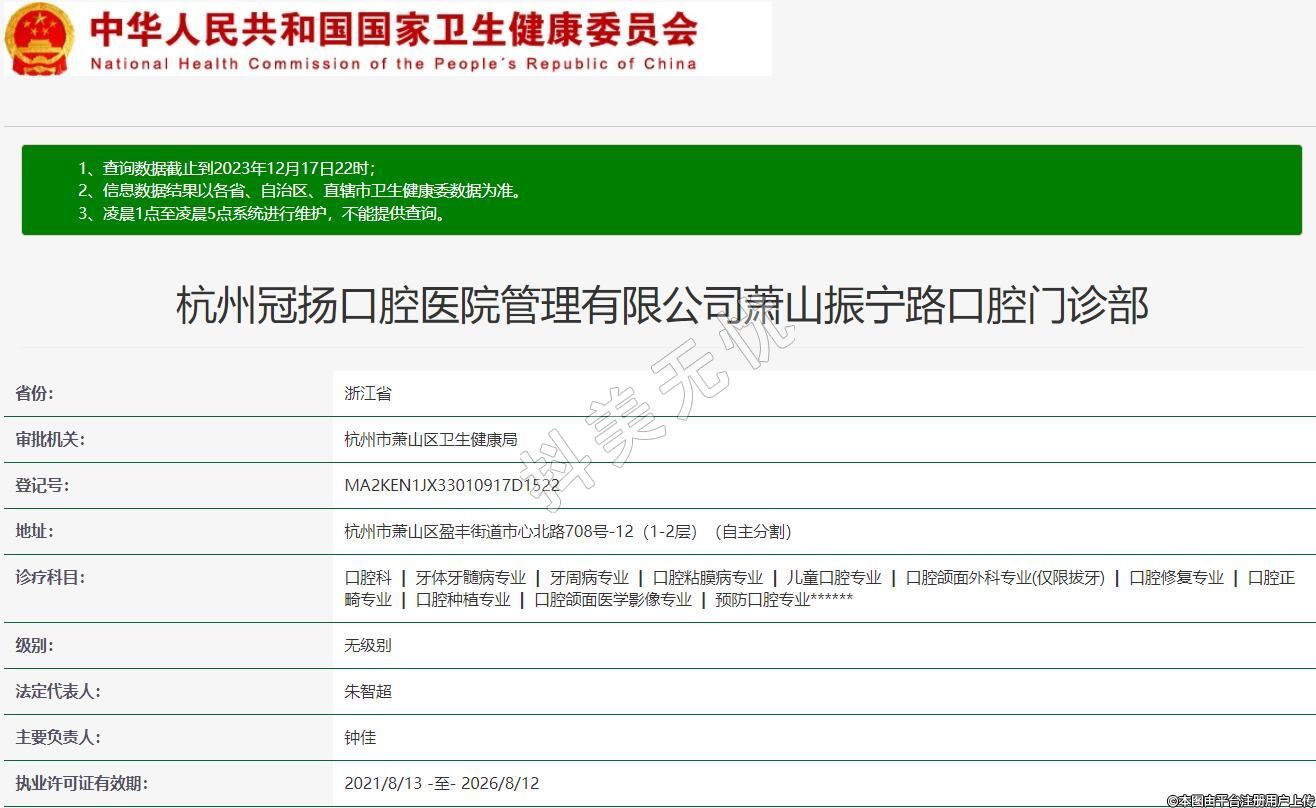 杭州冠揚口腔醫(yī)院管理有限公司蕭山振寧路口腔門診部