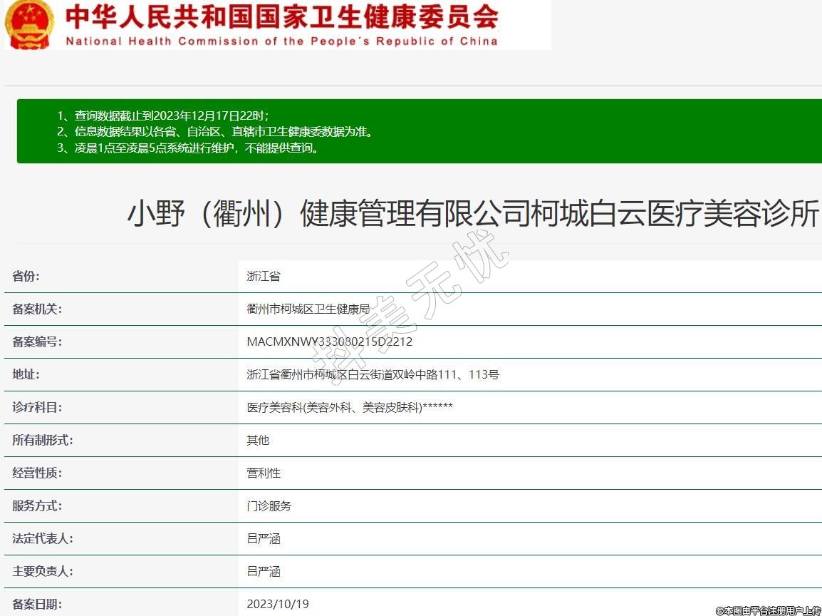 小野(衢州)健康管理有限公司柯城白云醫(yī)療美容診所