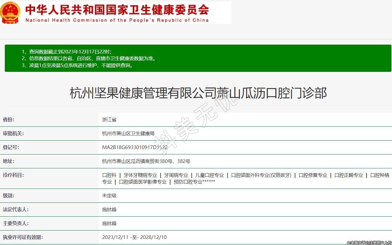 杭州堅(jiān)果健康管理有限公司蕭山瓜瀝口腔門(mén)診部