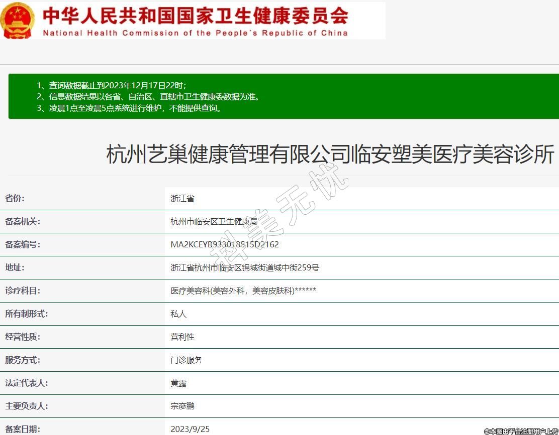 備案機關(guān):杭州市臨安區(qū)衛(wèi)生健康局