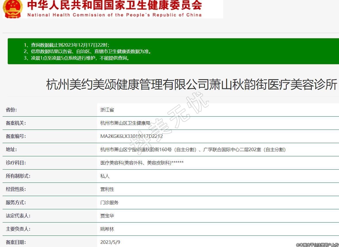 杭州美約美頌健康管理有限公司蕭山秋韻街醫(yī)療美容診所
