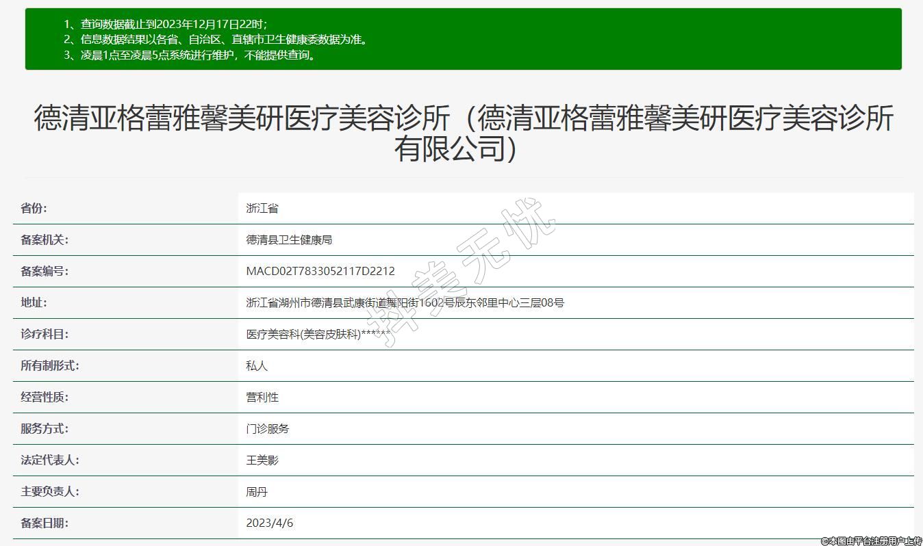 德清亞格蕾雅馨美研醫(yī)療美容診所(德清亞格蕾雅馨美研醫(yī)療美容診所有限公司)