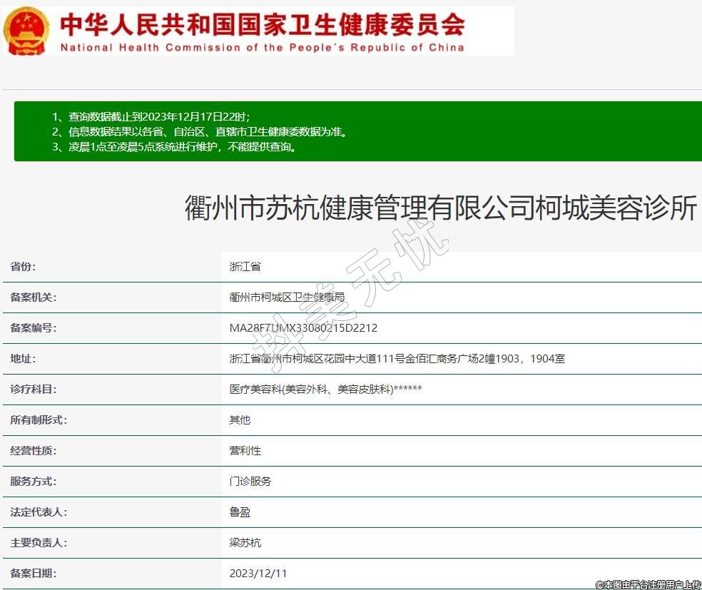 衢州市蘇杭健康管理有限公司柯城美容診所