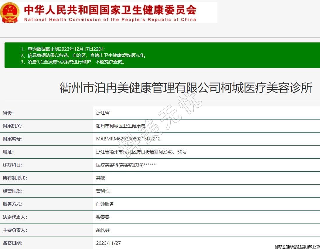 衢州市泊冉美健康管理有限公司柯城醫(yī)療美容診所