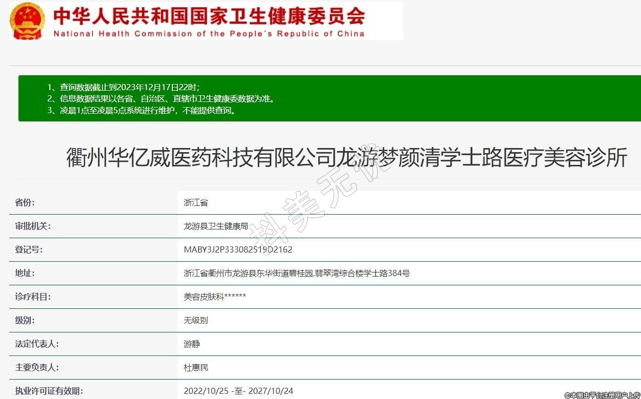 衢州華億威醫(yī)藥科技有限公司龍游夢顏清學(xué)士路醫(yī)療美容診所