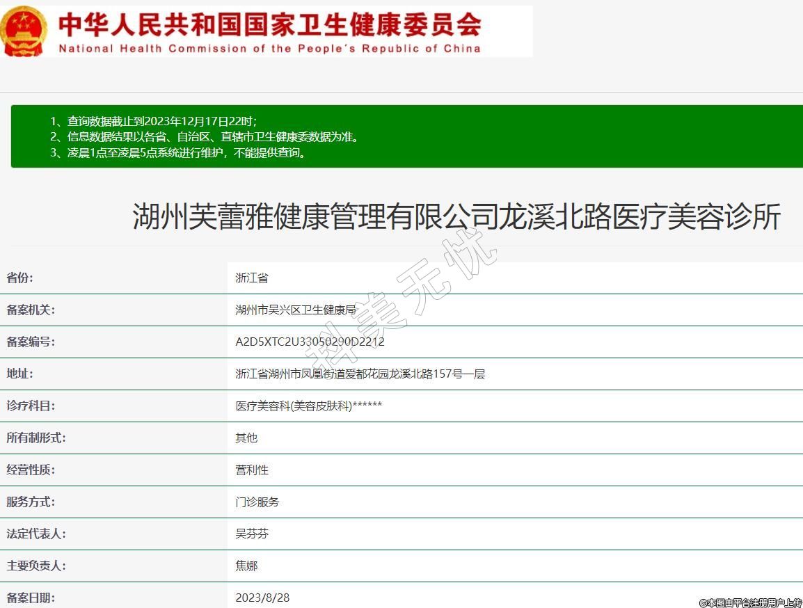 湖州芙蕾雅健康管理有限公司龍溪北路醫(yī)療美容診所