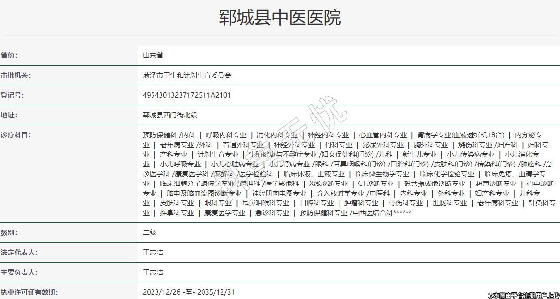 執(zhí)業(yè)許可證有效期:2023/12/26 -至- 2035/12/31