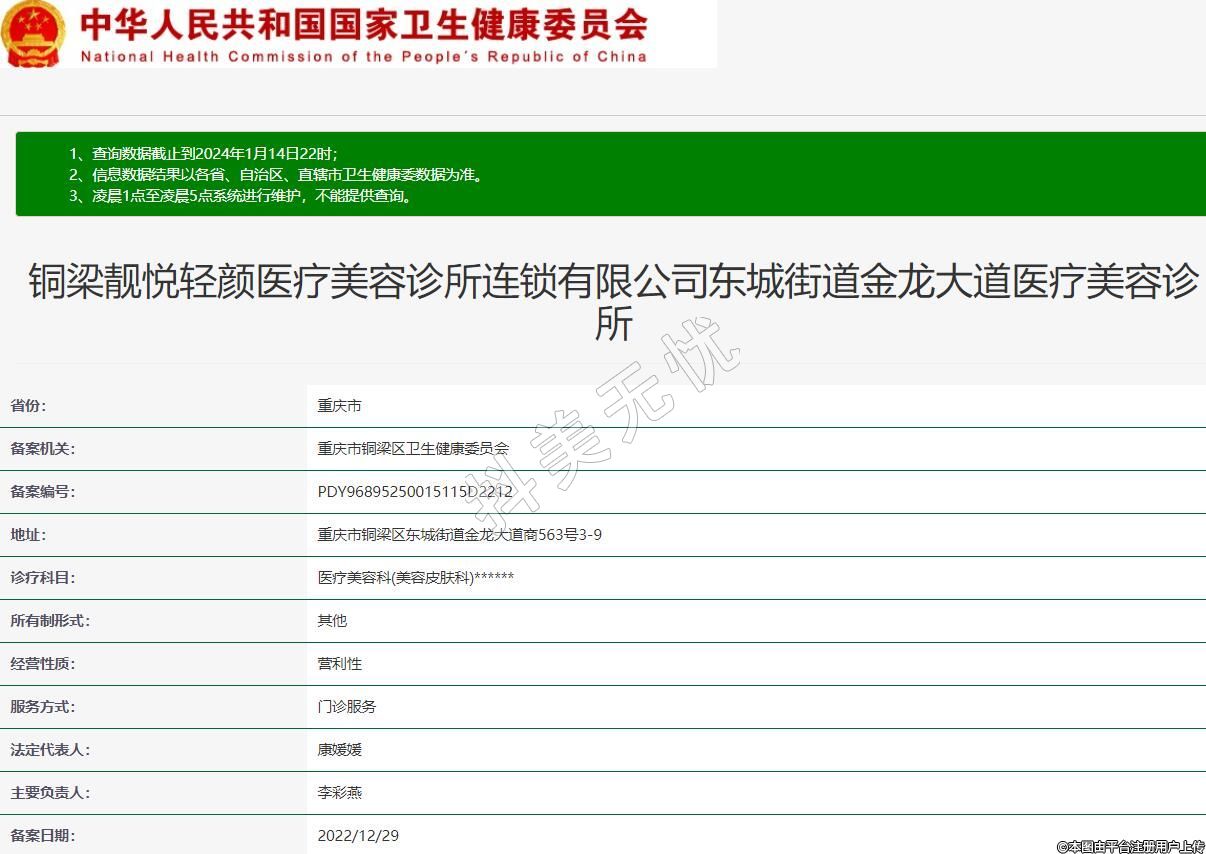 銅梁靚悅輕顏醫(yī)療美容診所連鎖有限公司東城街道金龍大道醫(yī)療美容診所