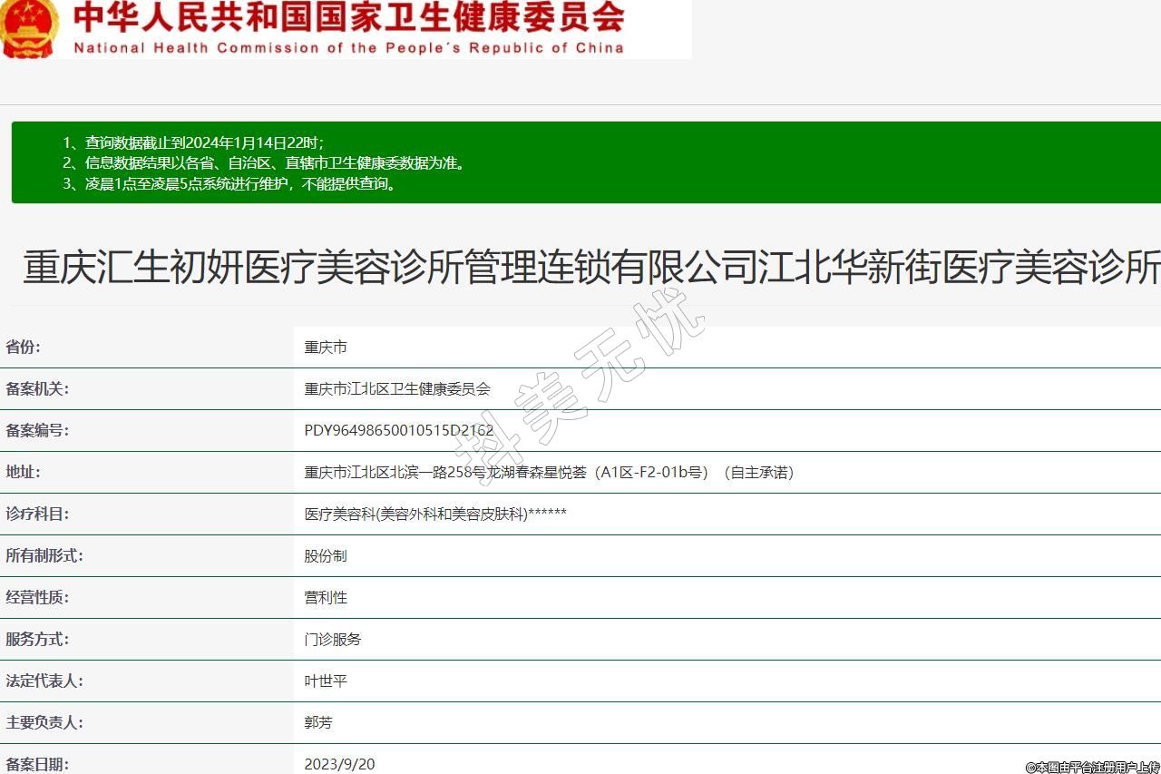 重慶匯生初妍醫(yī)療美容診所管理連鎖有限公司江北華新街醫(yī)療美容診所