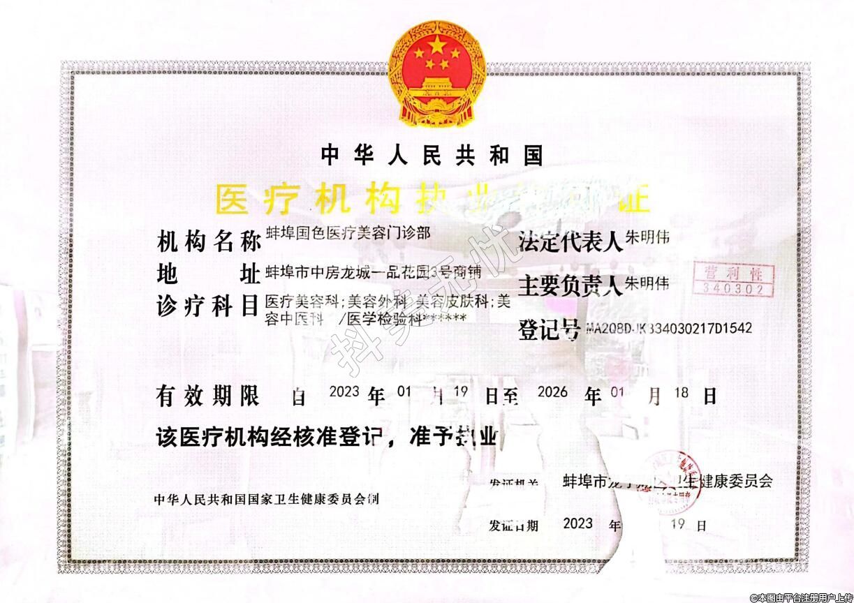 機構(gòu)名稱:蚌埠國色醫(yī)療美容門診部