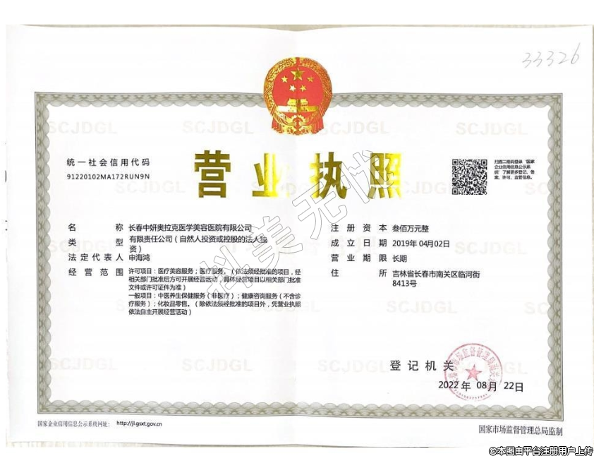 發(fā)證機關:長春市南關區(qū)衛(wèi)生健康局