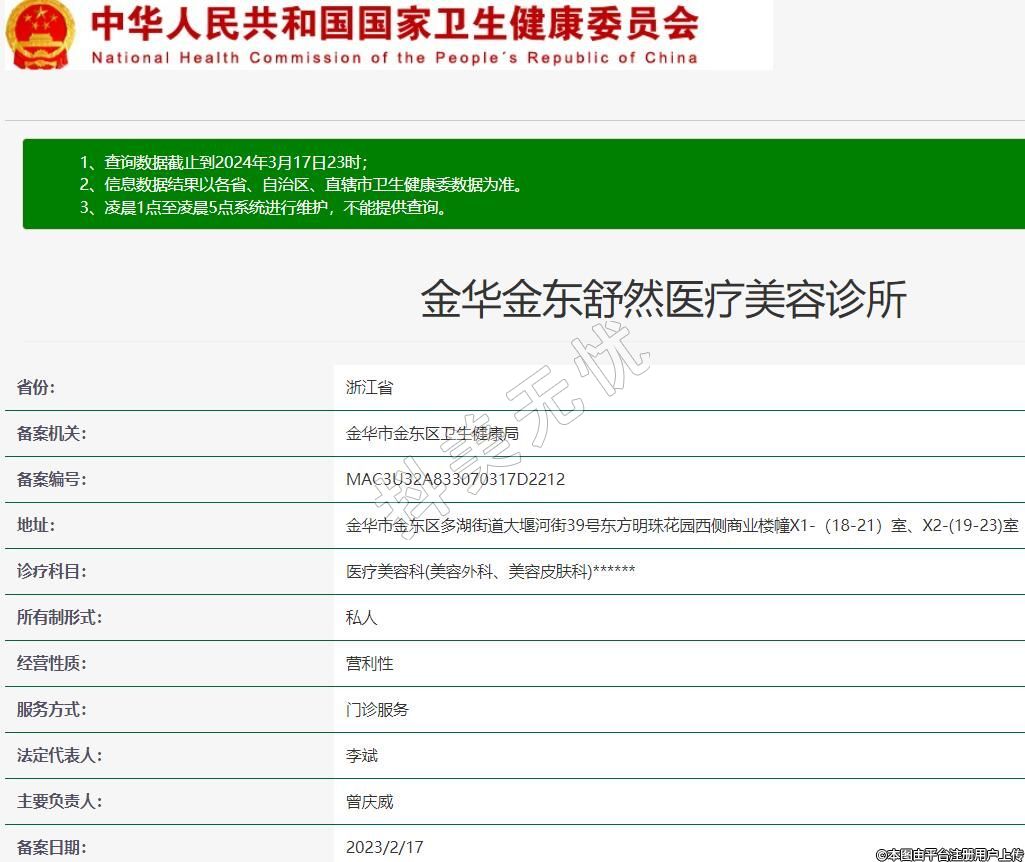 備案機關:金華市金東區(qū)衛(wèi)生健康局