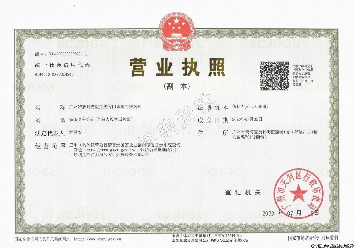 機構名稱:雅妍時光醫(yī)療美容門診部