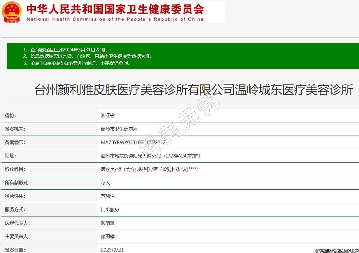 臺(tái)州顏利雅皮膚醫(yī)療美容診所有限公司溫嶺城東醫(yī)療美容診所