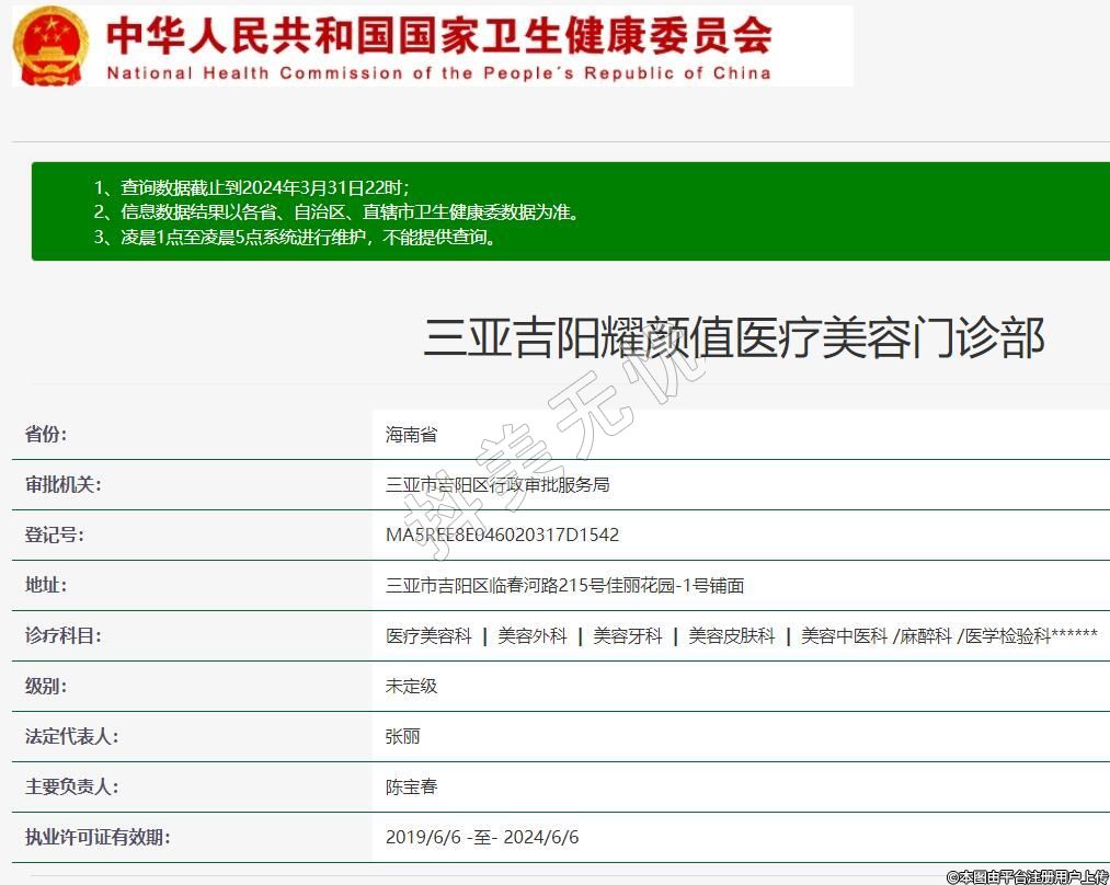 三亞吉陽耀顏值醫(yī)療美容門診部,診療科目:醫(yī)療美容科 | 美容外科 | 美容牙科 | 美容皮膚科 | 美容中醫(yī)科 /麻醉科 /醫(yī)學(xué)檢驗科******