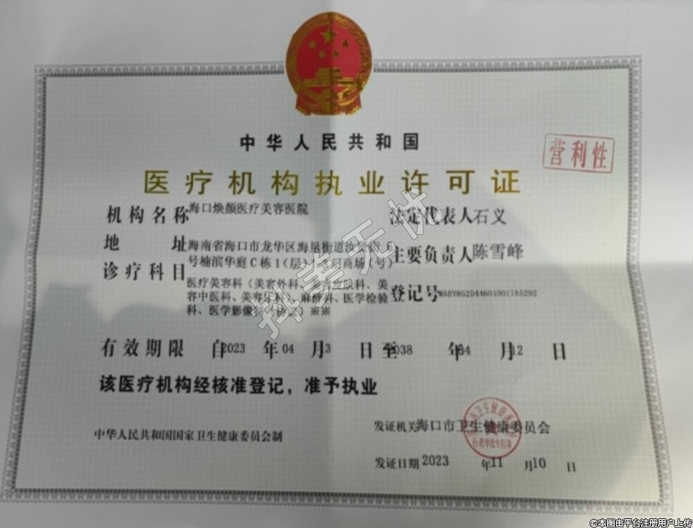 發(fā)證機(jī)關(guān):??谑行l(wèi)生鍵康秀員會