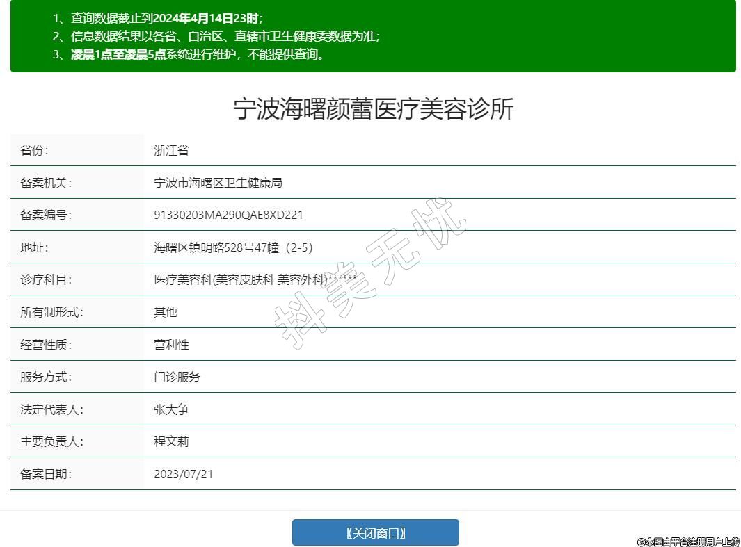 備案機關:寧波市海曙區(qū)衛(wèi)生健康局