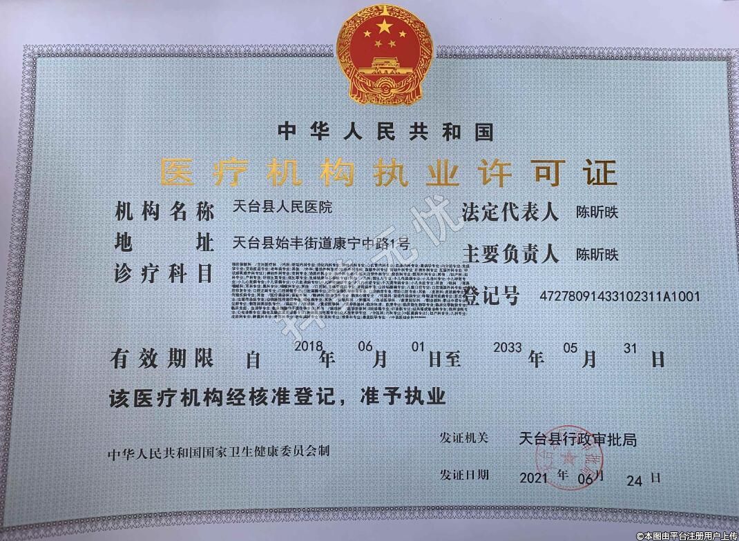 發(fā)證機(jī)關(guān):天臺(tái)縣行政審批局
