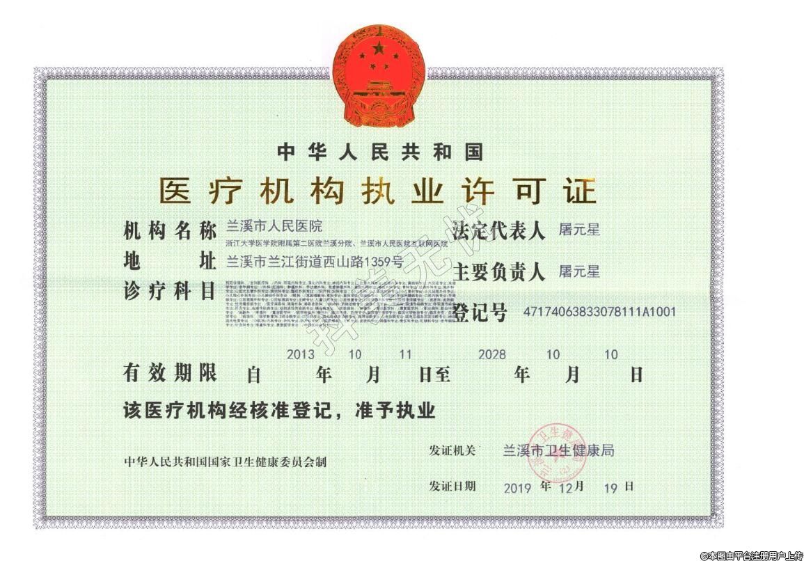 發(fā)證機關:蘭溪市衛(wèi)生局
