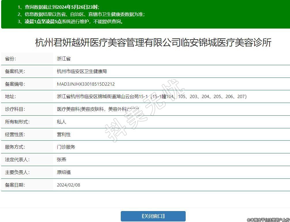 杭州君妍越妍醫(yī)療美容管理有限公司臨安錦城醫(yī)療美容診所